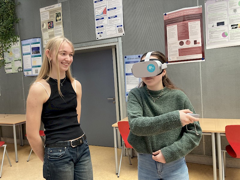 An verschiedenen Stationen wurden verschiedene Berufsfelder sowie die dafür benötigten Schlüsselqualifikationen vorgestellt. Es standen auch Videos sowie VR-Brillen zur Verfügung, die authentische Einblicke in den Arbeitsalltag verschiedener Ausbildungsberufe boten. Vor allem das VR-Erlebnis fanden die meisten Schülerinnen und Schüler besonders spannend!
